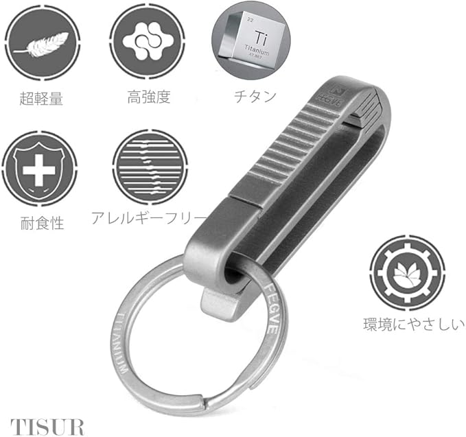[TISUR] チタン カラビナ キーホルダー メンズ ベルトクリップ キーリング付き プレゼント